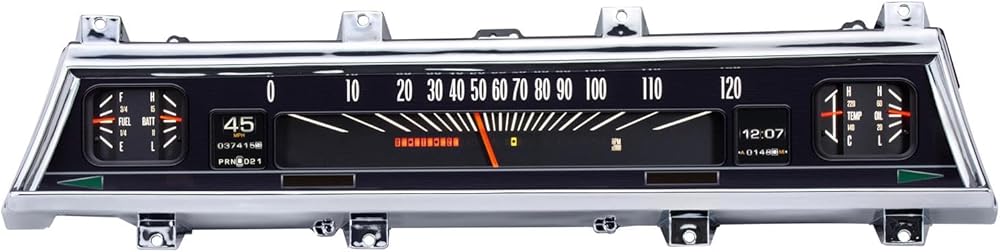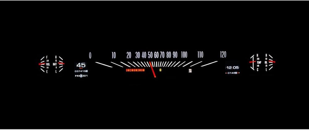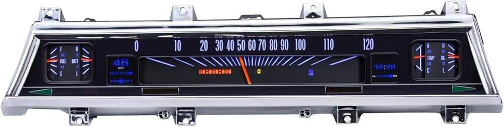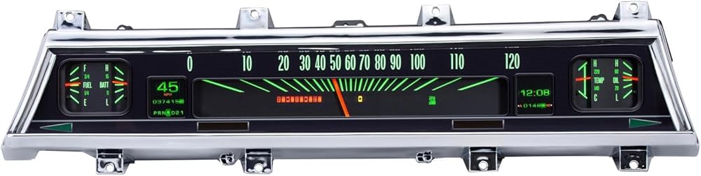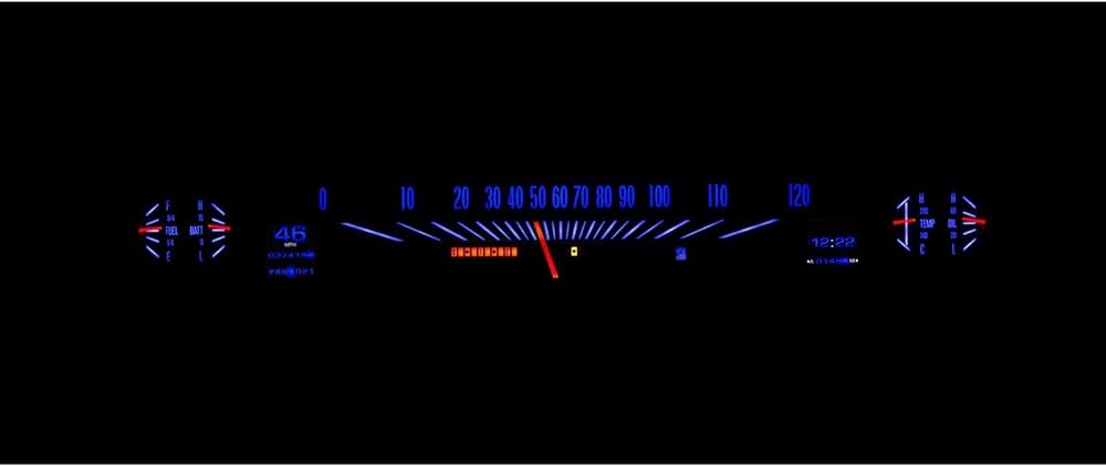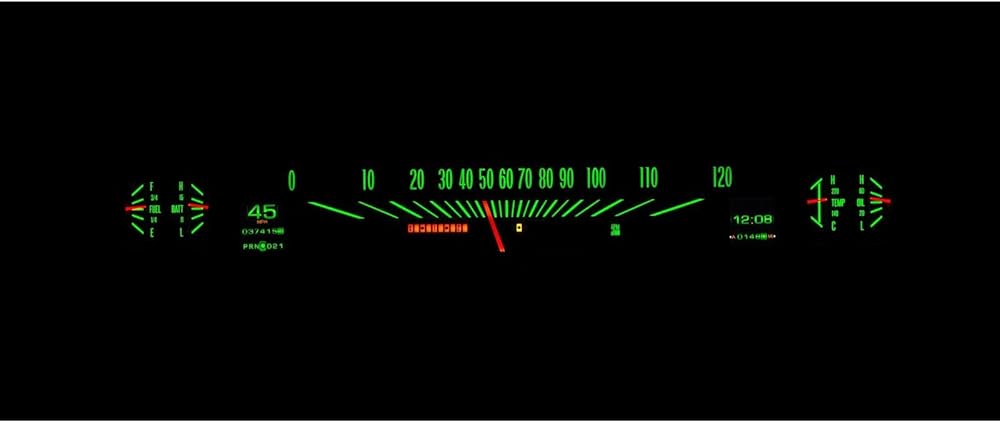 Analog Gauges: Speedometer (0-120MPH), Oil Pressure (0-80psi), Water Temp, Fuel Level, and Voltmeter