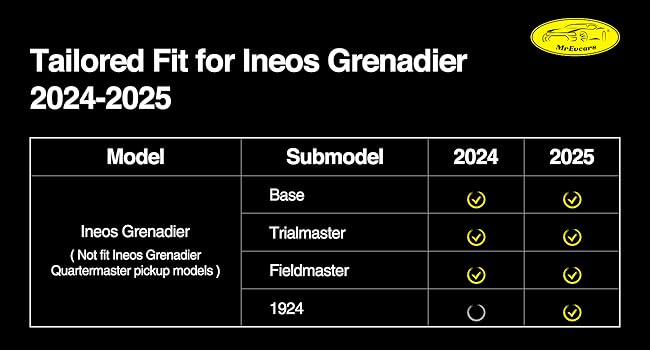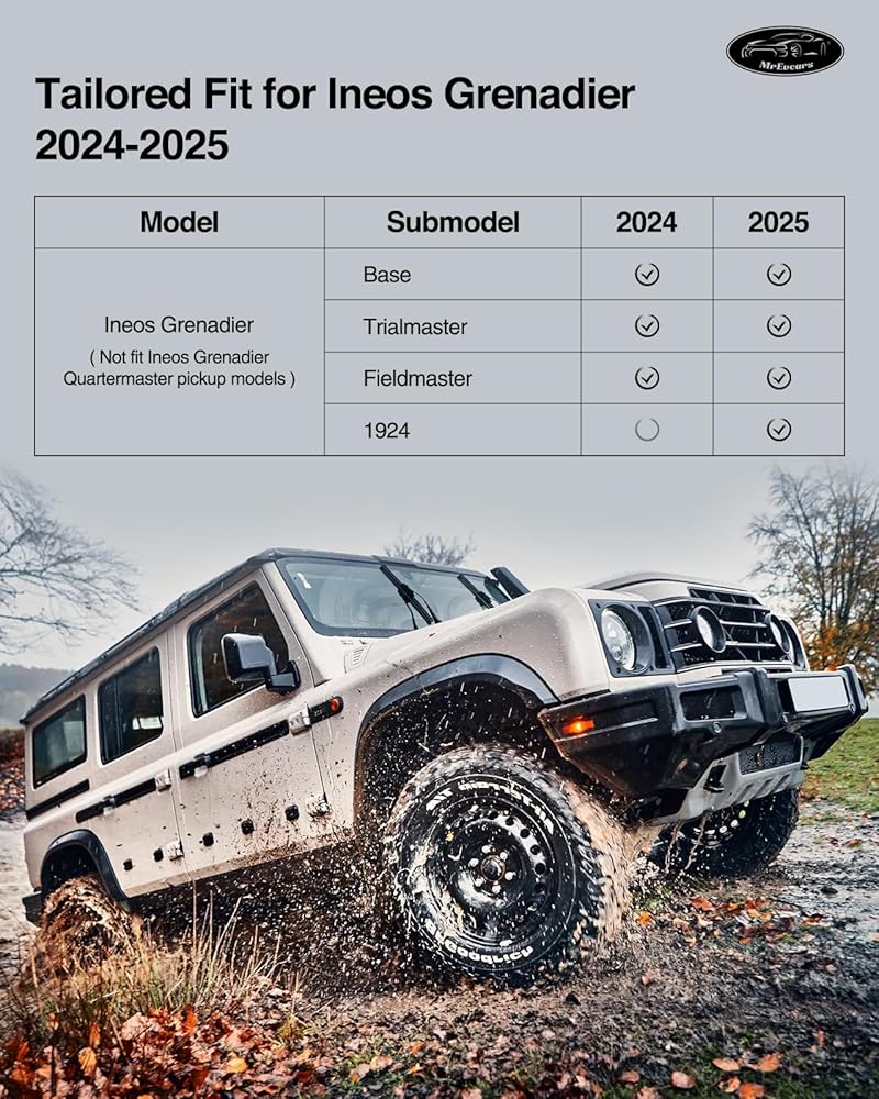 【Custom Fit for Ineos Grenadier 2024 2025】 Custom-molded for Ineos Grenadier 2024 and 2025 SUV models, this trunk mat offers full edge-to-edge protection for the rear cargo area. Not compatible with Quartermaster pickup trims. Whether you're searching for rubber car floor mats for Grenadier 2024 2025 or a fit custom trunk liner for Grenadier 2024 2025, this mat is tailored to deliver precision coverage and a seamless look