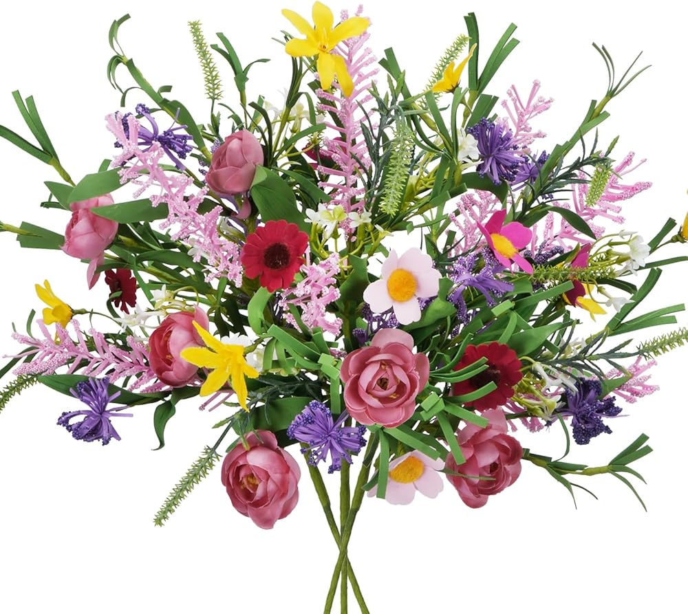 Wide range of uses: Colorful faux wildflowers dress up your porch, balcony, patio, bedroom, living room, kitchen, study, dining table, office, balcony, wedding and other occasions in a vibrant and elegant way.
