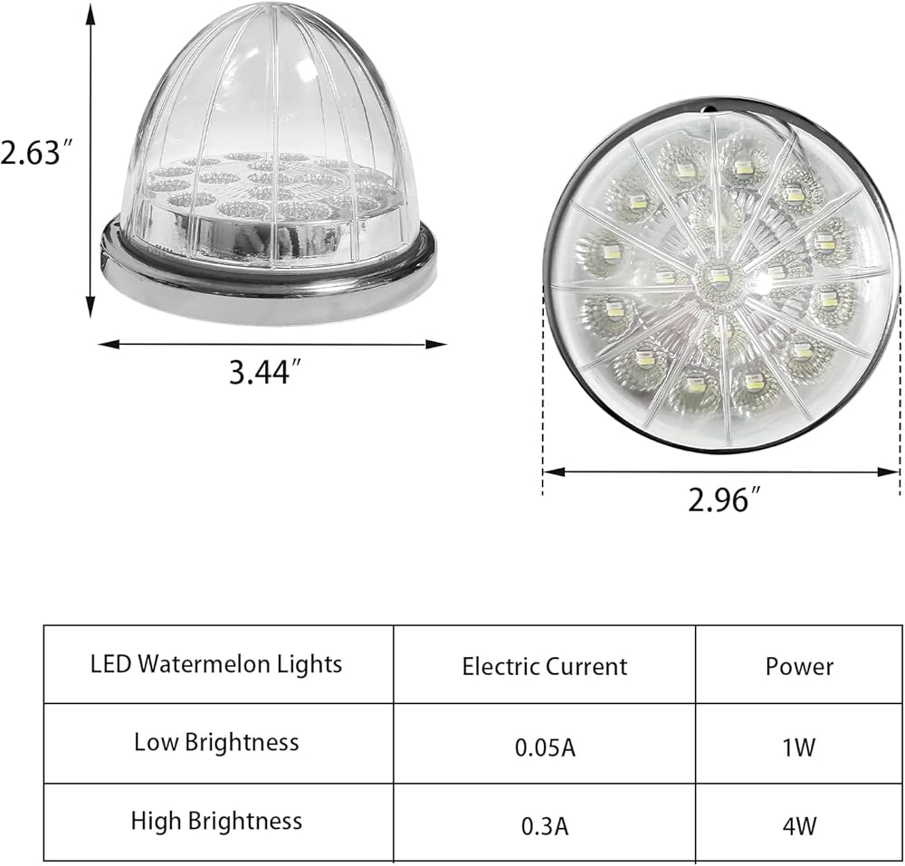 Simple Installation Process: These LED watermelon lights are pre-wired with four wires and include two mounting screws for easy installation. The lights are 3.44 inches in diameter, 2.63 inches in height and come with a wire length of 7.87 inches (20cm). They are perfect for versatile mounting locations such as bumpers, air cleaners, marker lights, and interior dome lights.
