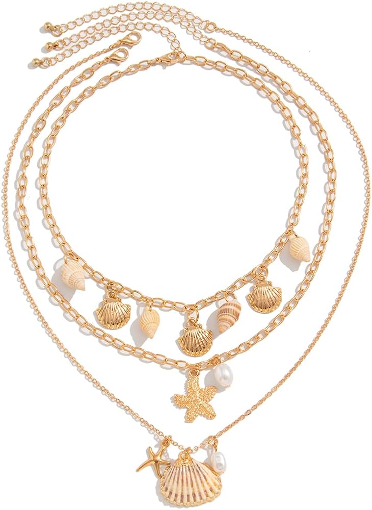 LAYERED DESIGN: Layered pendant necklace is made from high quality starfish and shells alloy features three delicate chains with ocean-themed charms including a shell, starfish, and pearl for a stunning beach-inspired look ,excellent workmanship, would not not easy to fade.