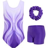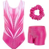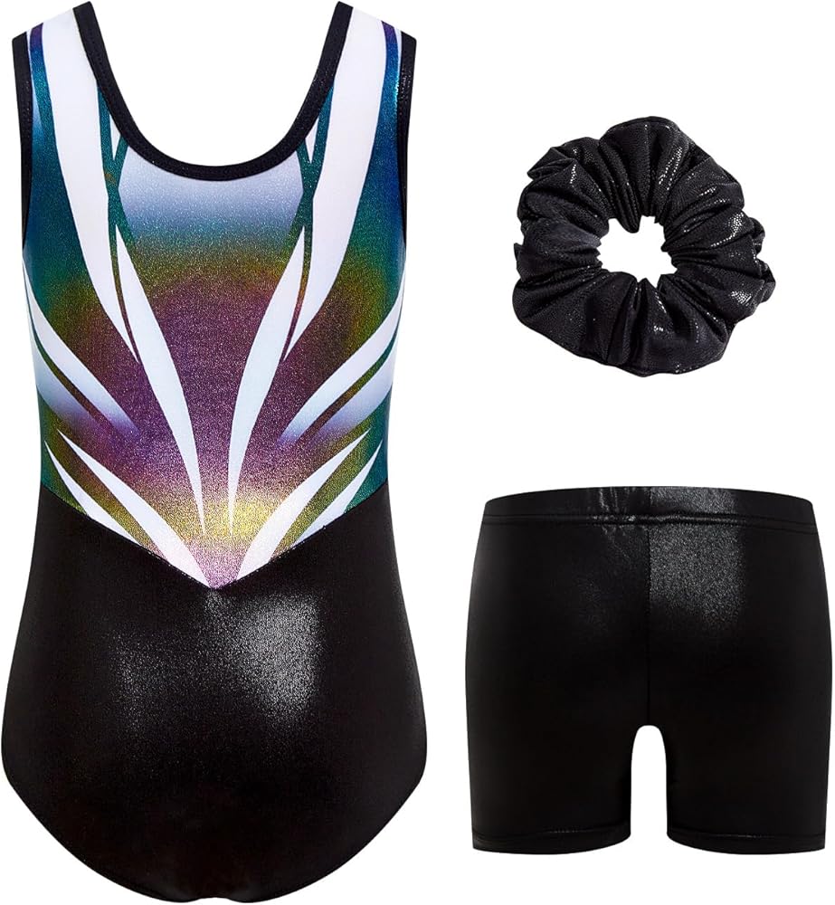 3 Piece Set: Girls gymnastics leotards outfit includes 1 leotard, 1 pair of shorts and 1 scrunchie, which saves time in matching and can be matched with other gymnastics set to increase the diversity of matching; the 3-piece set provides matching of the same color and is very affordable