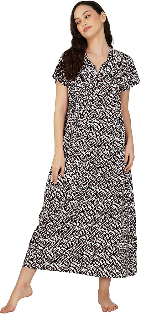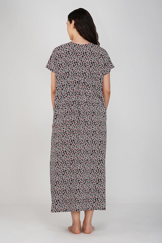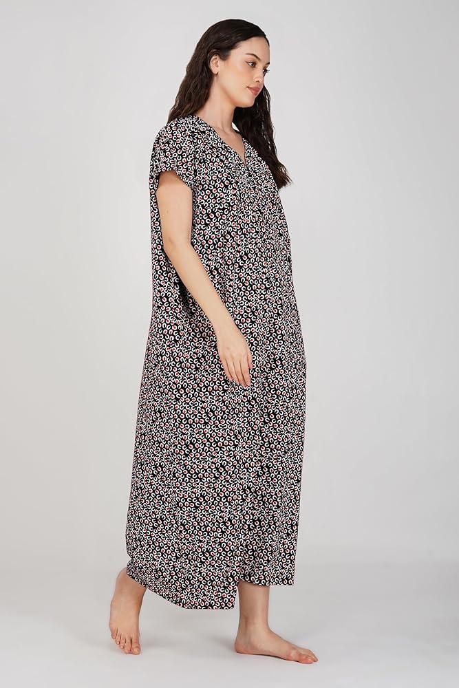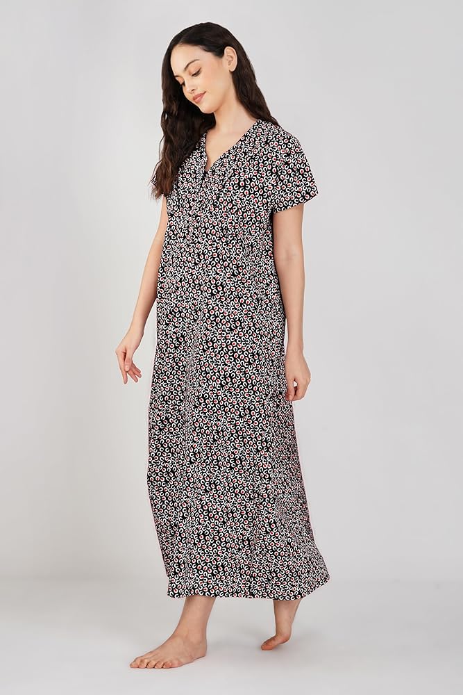 Premium Cotton-Rayon Fabric: Crafted from high-quality cotton-rayon, this nightgown provides an incredibly soft, lightweight, and breathable experience. It ensures maximum comfort, allowing your skin to feel free and cool throughout the night.