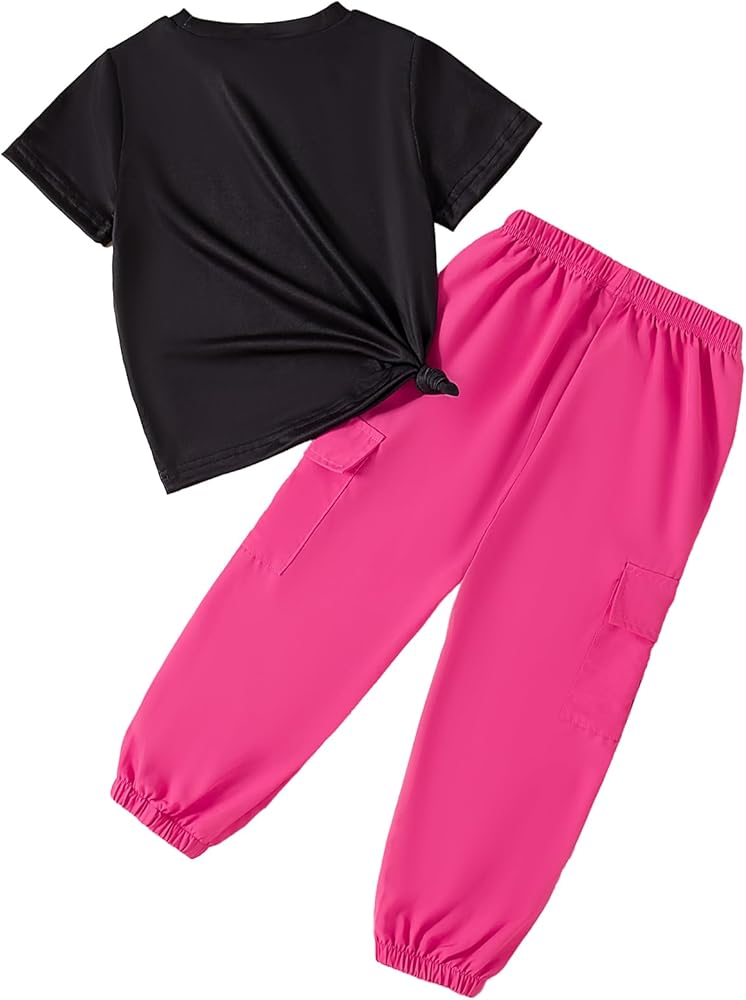 Design: The girls T-shirts and cargo sweatpants for little girls consists of a short-sleeved T-shirt with eye-catching and unique letter or graphic prints and elastic-waist pants, saving you the trouble of matching