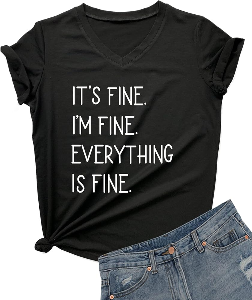 DANVOUY Women's V-Neck Its Fine Im Fine Funny Letter Print T-Shirt Graphic Short Sleeve Top in Kuwait DANVOUY Women's V-Neck Its Fine Im Fine Funny Letter Print T-Shirt Graphic Short Sleeve Top in Kuwait DANVOUY Women's V-Neck Its Fine Im Fine Funny Letter Print T-Shirt Graphic Short Sleeve Top in Kuwait