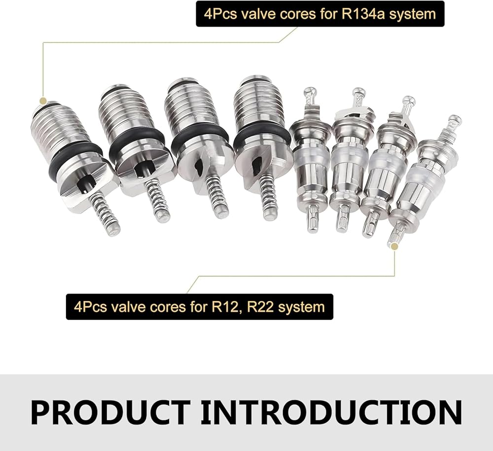 Core Functionality: The A/C valve core repairs leaks in automotive and residential air conditioning systems. Restores cooling efficiency for R12, R134a, and R22 refrigerant-based systems by sealing compromised valve points.