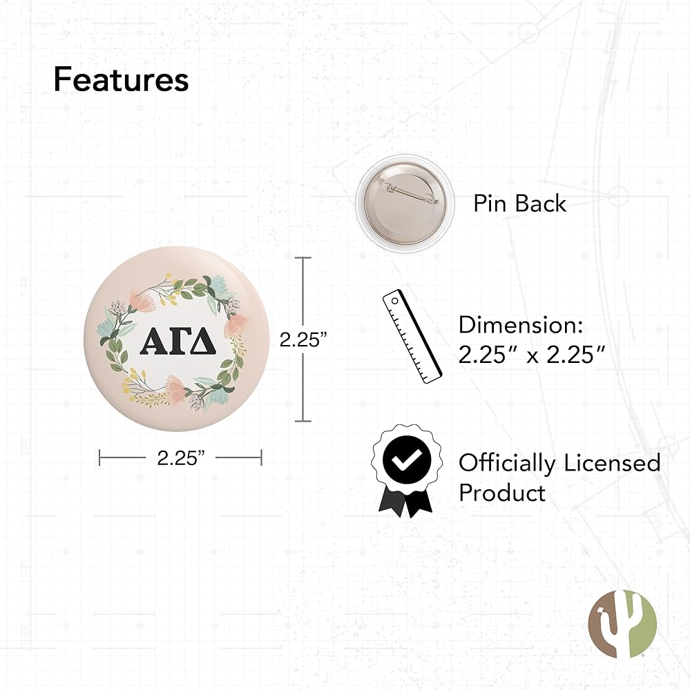 If you want a stylish, official sorority pinback buttons as a gift for someone special, we're here to make sure you get nothing but the best. Desert Cactus has the largest selection of Sorority products available on the market today. Quality as well as amazing value for money and this item allows you to support your Sorority, Fraternity, or organization by purchasing Officially Licensed products.