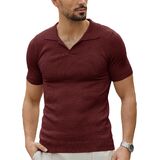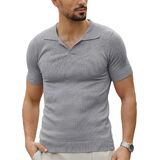 【Classic & Comfortable】 Featuring a V-neck with ribbed details and double-stitched seams, this slim-fit shirt is stylish and durable, ideal for both gym and office wear.