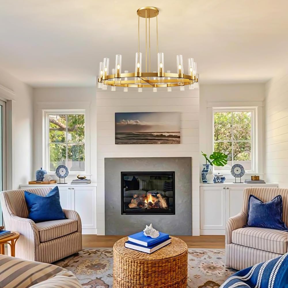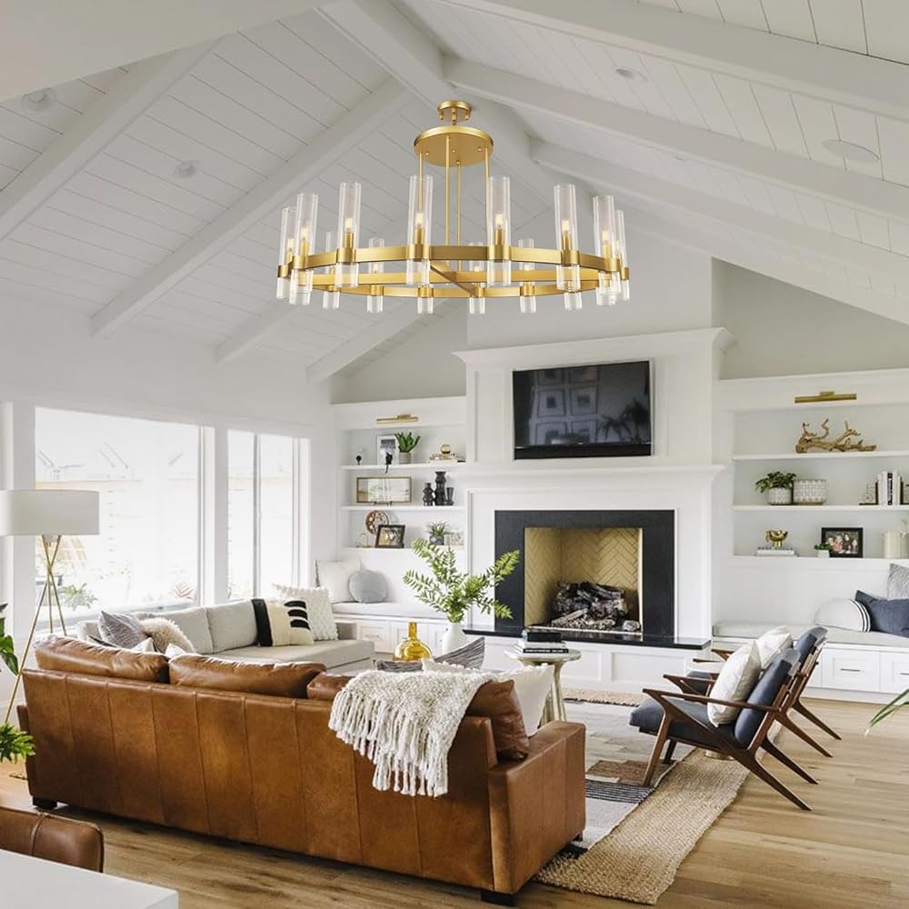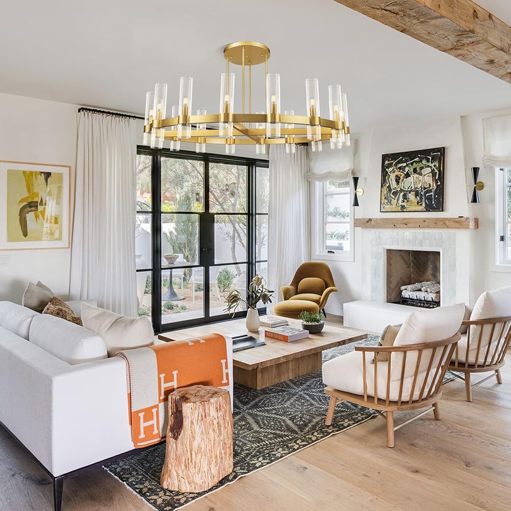 Versatile Lighting for Any Space: Whether you need a dining room chandelier, bedroom chandelier, or entryway chandelier, this piece adapts effortlessly. Its timeless yet modern farmhouse aesthetic enhances living rooms, offices, hotels, and conference rooms. The brass and glass accents add sophistication, while the round ceiling light design ensures balanced illumination