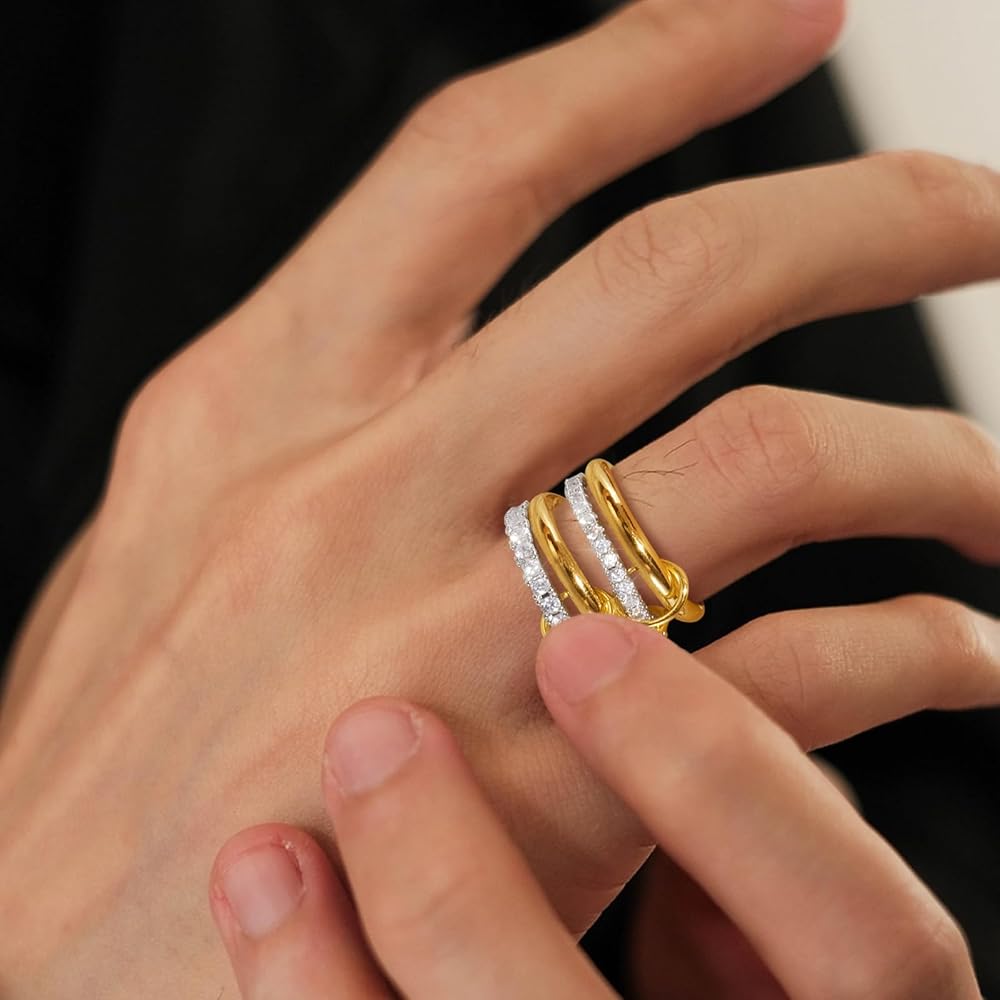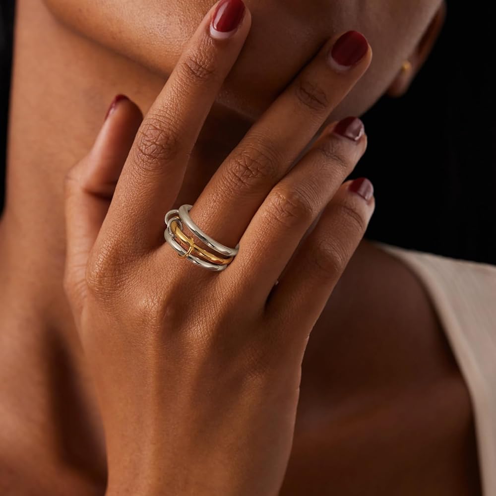 【Stacking Ring Design】The interlocking design brings endless styling options, easily matching with casual or formal wear to create a fashionable stacking look. This multi-link ring is not only a visual expression, but also a symbol of love, friendship and loyalty, an expression of deep emotional bonds.