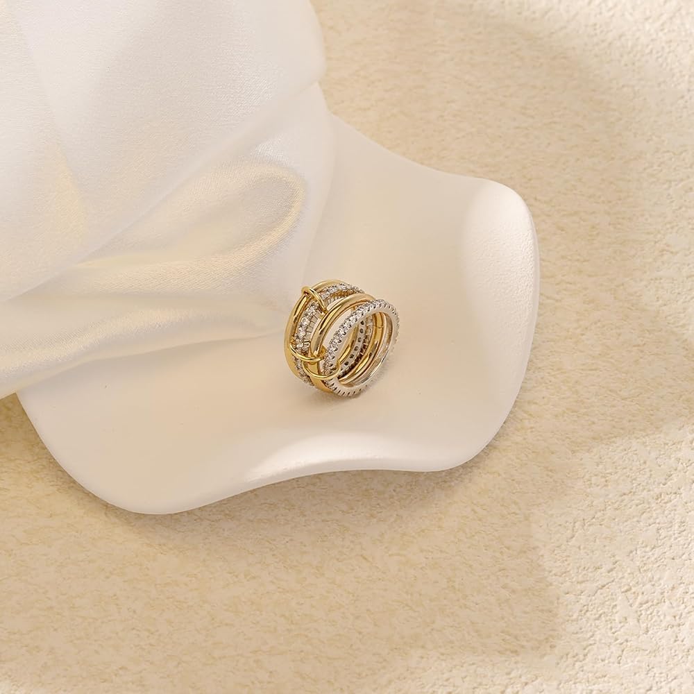 VIBILIA Gold Silver Interlocked Stackable Rings for Women Non Tarnish Dainty Ring Set Cubic Zirconia Stacking Statement Rings Two-Toned Connected Bands Jewelry Gift for Women