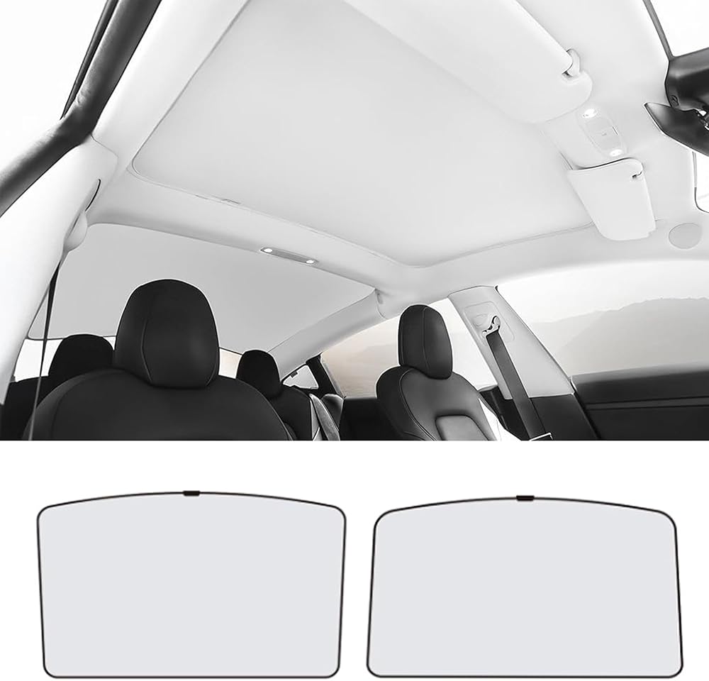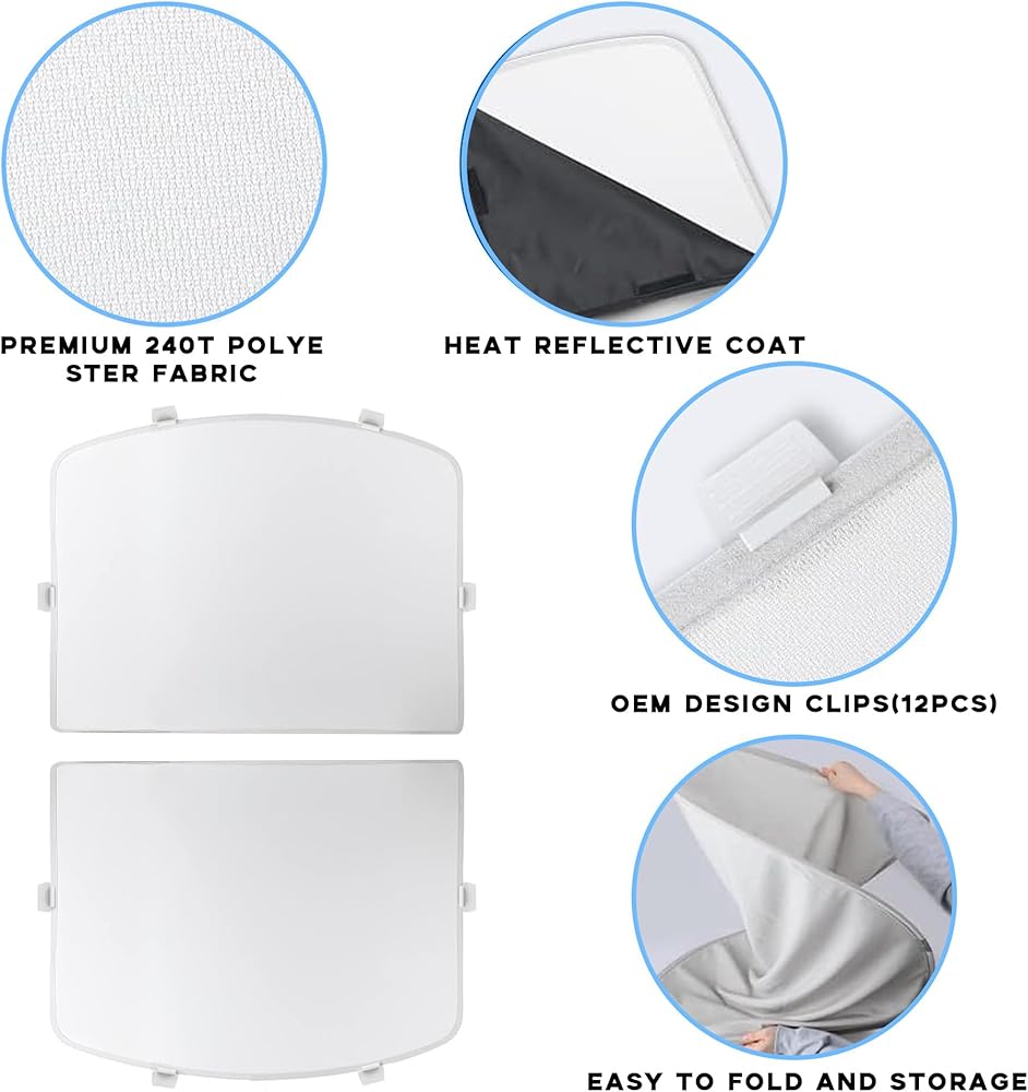 【Upgraded Design】The 2 in 1 ice crystal sunshade for tesla model 3 glass roof has an upgraded design, which integrates the silver dot silver coating layer and the high-density nano sun visor layer into one body. The upgraded sleek design complements your car's interior while providing maximum sun protection