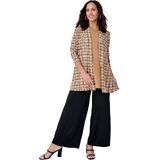 A chic layer to throw over your everyday separates, this topper adds an instant pop to any look. The stretch jersey knit drapes beautifully, keeps its smooth shape wash after wash, and packs without wrinkling. It's finished off with tulip sleeves and a side slit. Relaxed silhouette Open front with self-trim Long sleeves Side slits 34" length Poly/spandex Machine washable Imported