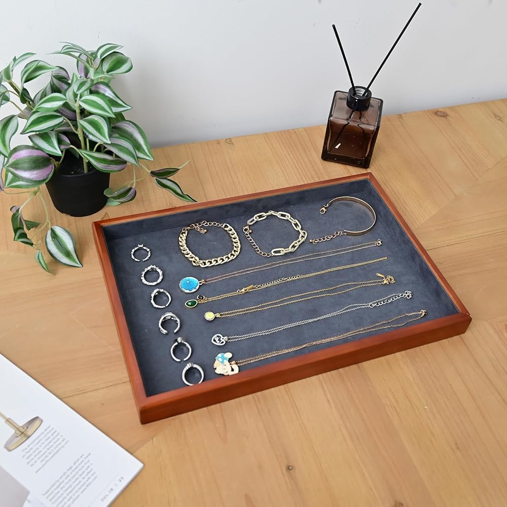 Premium Quality Materials: Crafted from solid wood with a clear and smooth texture, this tray is more durable than traditional wooden trays. The luxurious microfiber lining protects your jewelry from scratches and tangling, ensuring each piece remains pristine.