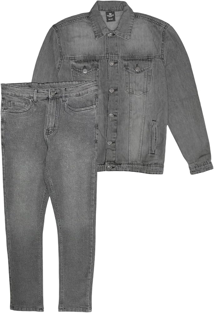 This men's denim classic jean suit includes a standard jacket and slim fit jeans, providing a stylish and polished outfit. The jacket features a classic design and the jeans are slimming for a flattering fit. Perfect for any occasion, this suit is a must-have for any fashion-forward man.