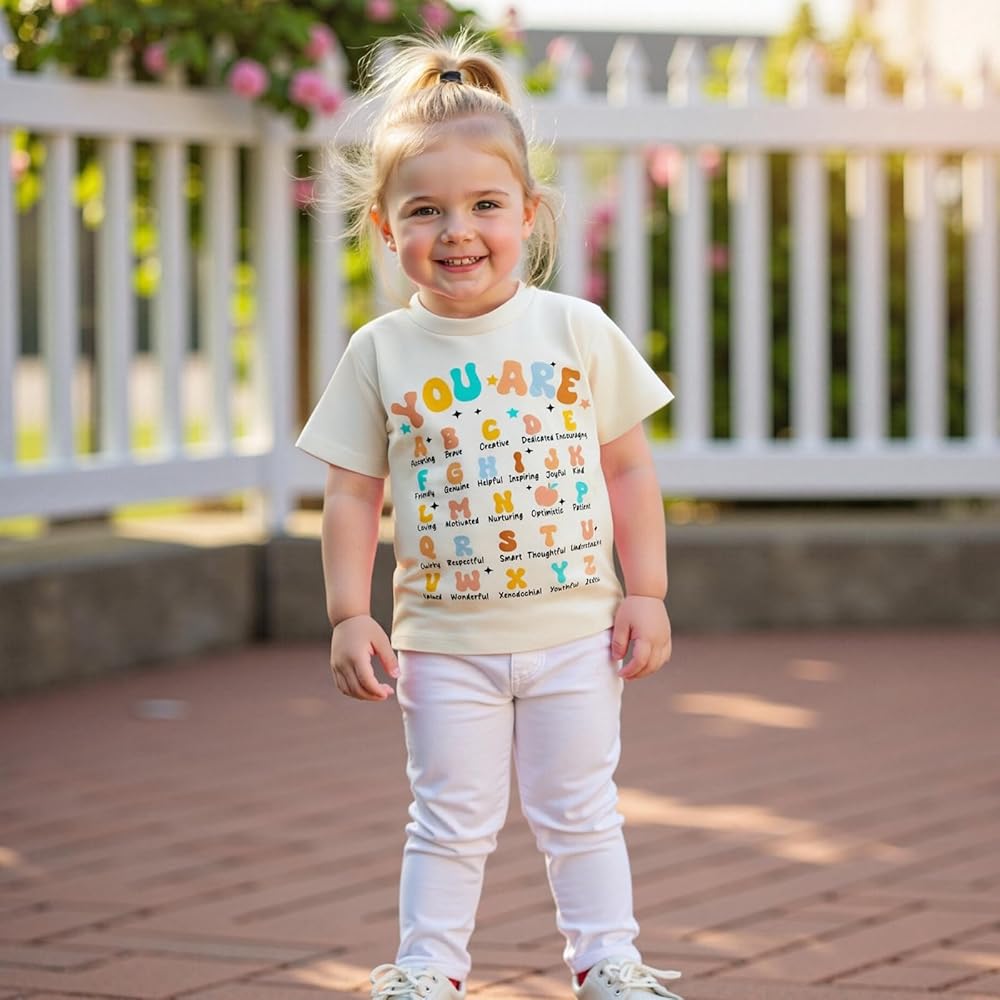 Features: School shirts for girls, back to school clothes for boys, toddler girls summer outfit, kindergarten shirts for girls, with letters print, short sleeve, fashion toddler boys shirts for first day of school