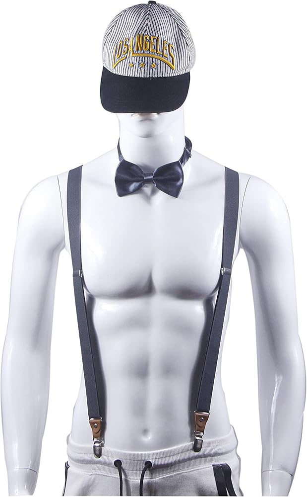 💛EASY TO ATTACH CLIPS :No more falling pants! One size fits most.Normal length is from 32'' to 52''. Elastic Length can be up to 66''.width is 1" and the suspenders never hurt the shoulders.The bow tie is adjustable and bow is 5'' length and 2.5'' width. Pre-tied bow ties.Great for men,women and teens.