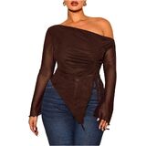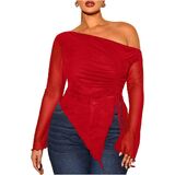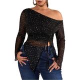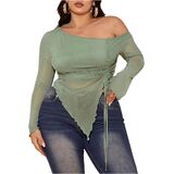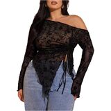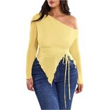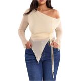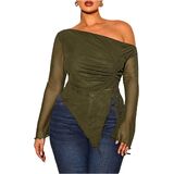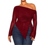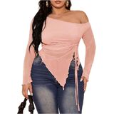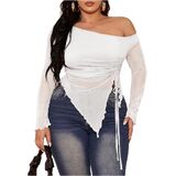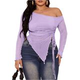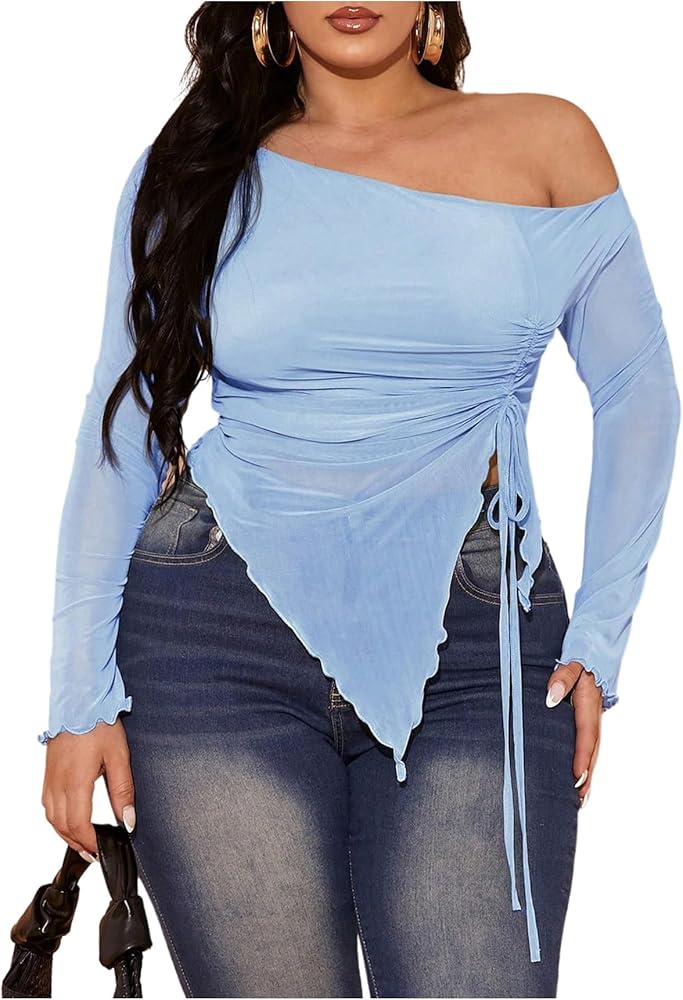 - Features: Off the shoulder tops for women, see through, drawstring, ruched, irregular hem, slim fit, long sleeve