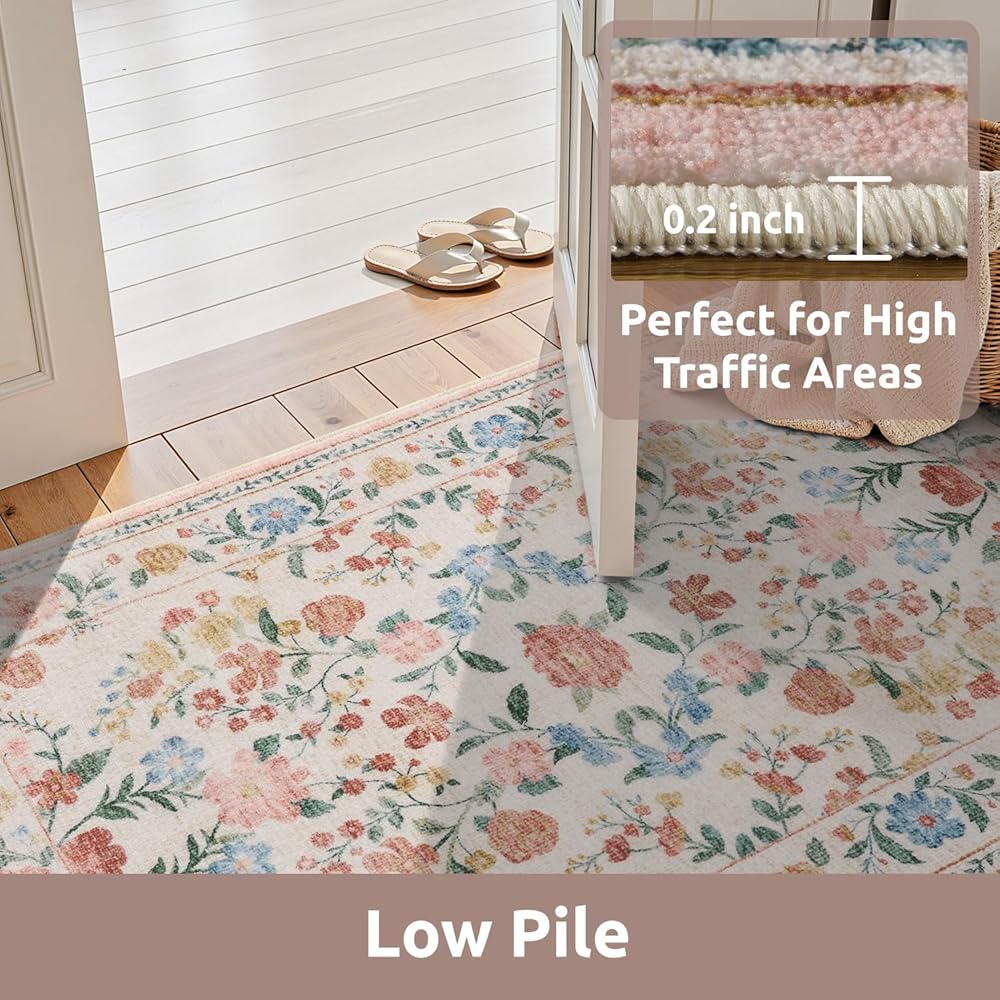 [Vintage Floral Area Rug] A boho runner rug combines symmetrical floral pattern and coordinated color scheme, easily bringing you into a romantic country garden. The neutral design blends seamlessly with any decorating style and scenes, making our runner rugs for entryway an ideal choice for entrance, kitchen, bedroom, living room, dining room, playroom and office.