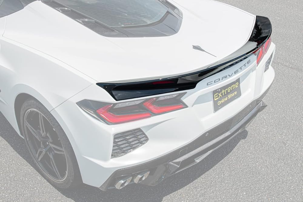 Replacement For 2020-Present Chevrolet Corvette C8 Models | Performance Track Ducktail Style ABS Plastic - Painted Glossy Black Rear Trunk Lid Wing Spoiler