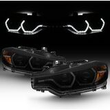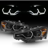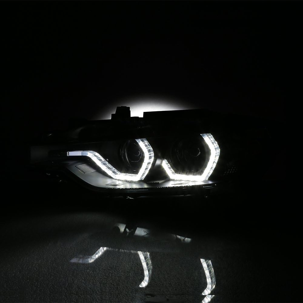AKKON - For BMW F30 3-Series 4 Doors Sedan Black Bezel Factory Halogen Type Dual U-Halo Ring LED Projector Headlights