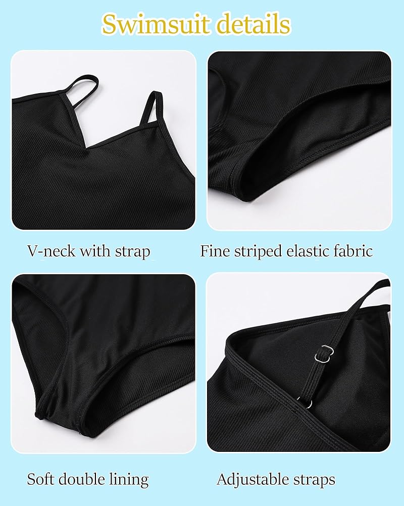 Why This Swimsuit Stands Out: ✅Adjustable Straps for Growing Comfort The bathing suits for kids comes with adjustments straps—tighten for vigorous swim lessons or loosen for lazy pool floats,while the secure clasps ensure no mid-play slippage. ✅ Flattering V-Neck & Streamlined Silhouette Girl swimsuit a modest yet chic V-neckline elongates the torso and avoids awkward tan lines. The seamless armpit contour and tag-free interior eliminate chafing, perfect for sensitive skin. ✅ Discreet Support for Tweens (Sizes 10Y-14Y) Older girls deserve discretion too! Swimsuit for kids sizes 10Y+ include ultra-thin removable pads that provide gentle shaping without bulk. Pads stay firmly in place but pop out effortlessly for washing or personalized comfort. ✅ Butter-Soft Fabric That Moves With Her Swimsuit for girls made from 82% polyamide + 18% elastane, our fabric offers 4-way stretch and chlorine resistance. It dries 50% faster than regular kids swimsuits, reducing post-swim chills. The color-lock technology keeps hues vibrant through sun, saltwater, and 100+ washes. ✅ Play-Proof Design Details Bathing suit girl flatlock seams prevent rubbing during cartwheels Double-lined crotch for opacity and quick drainage