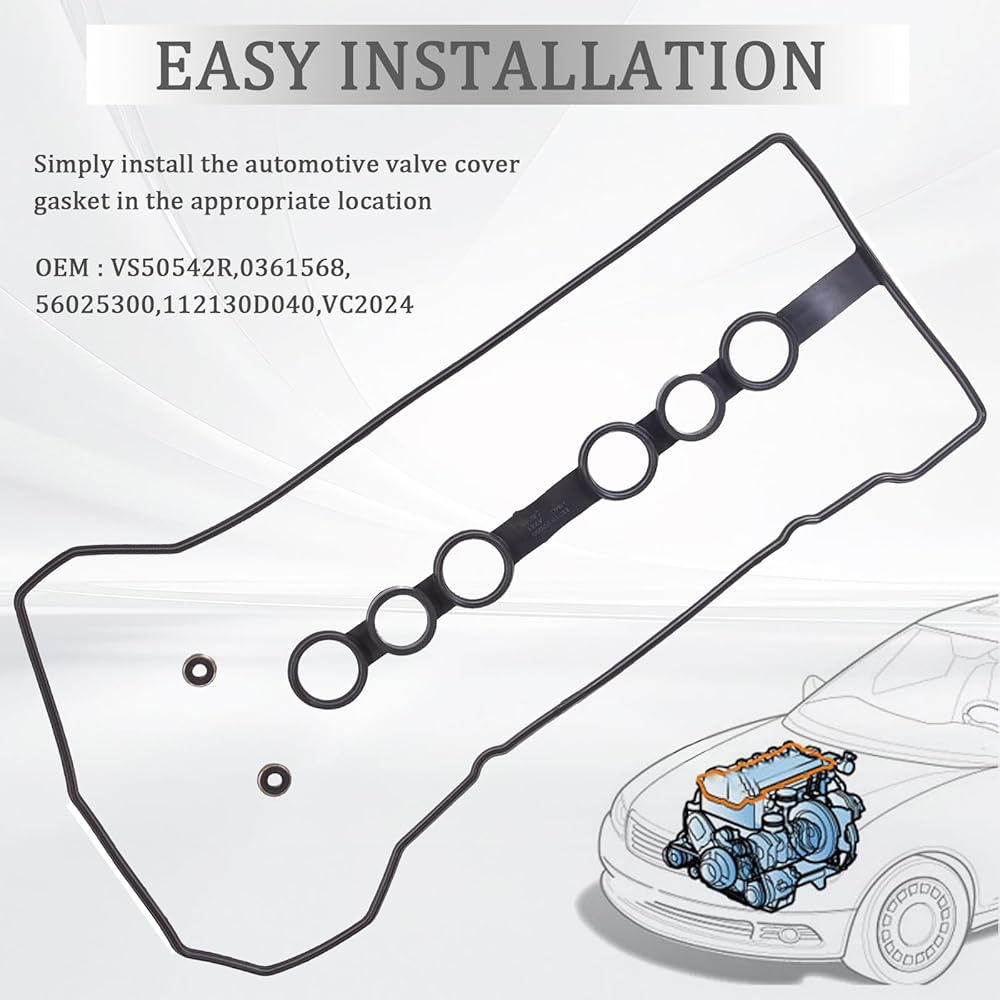 【OEM Part NO.】: Replace OE# VS50542R 0361568 112130D030 112130D040 1121322050. Engine valve cover gasket with high quality materials and advanced technology, OEM design and direct fit, meet or exceed OEM standards.