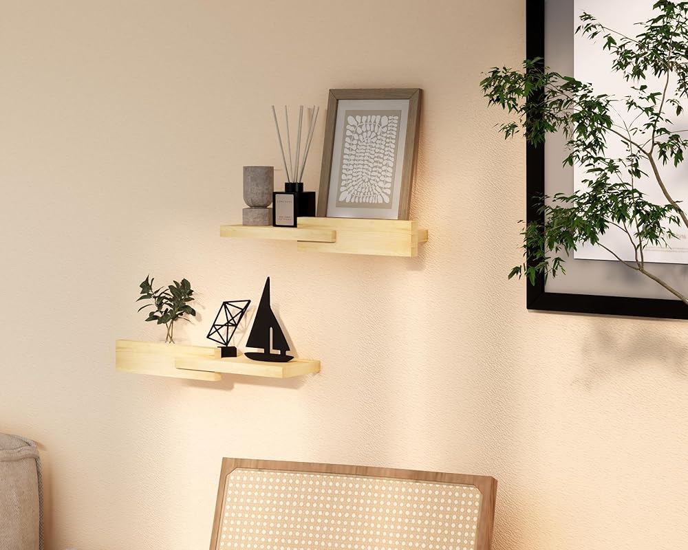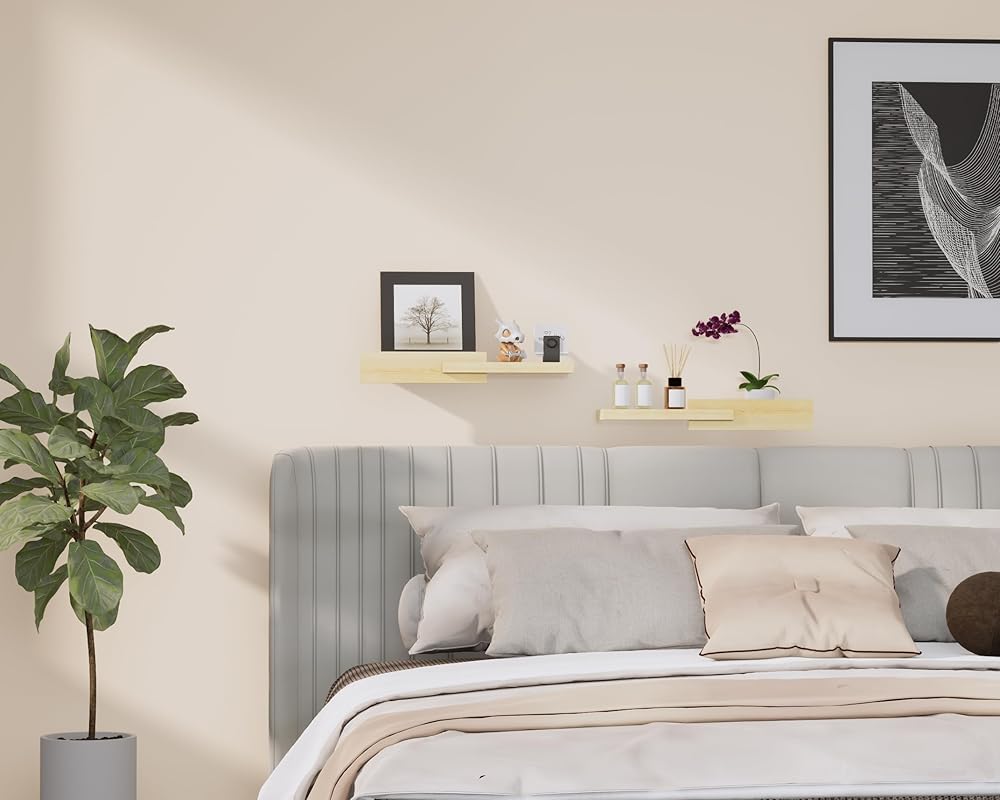 【Hidden Steel Brackets & Fast Install】 Our floating wall shelves use concealed steel brackets that support up to 15 lbs securely—no tilting or sagging over time. Clear instructions let you mount them in just minutes, ideal for your bedroom, bathroom, kitchen, or office.