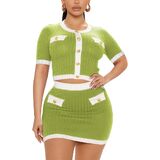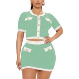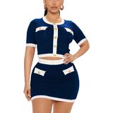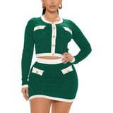 【Features】: Long sleeve, round neck and crop tops, 14 piece outfits for women sexy skirt set, metal buttons as decoration, and color contrast two piece skirt set for women design can attract more people's attention. The high waist tight two piece jumpsuit shows the sexy curve and makes you look more charming.
