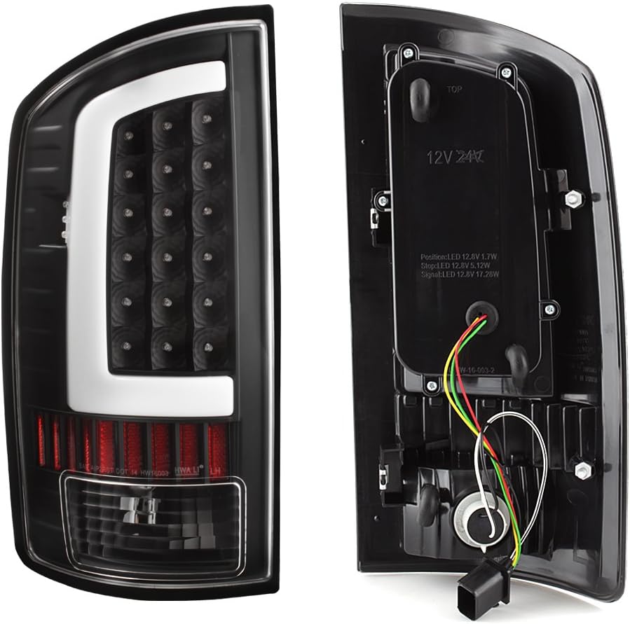 AKKON - For 03-06 Dodge Ram 1500 2500 3500 LED DRL Light Tube Black Tail Brake Light Lamp Assembly