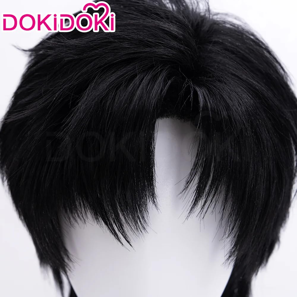 KIRA KIRA Zayne Cosplay Wig 38cm/15’’ Love And Deepspace Zayne Mullet Silent Radiance Wolf Cut Wig Lishen Black Short Straight Hair for Halloween Cosplay (Black Zayne)