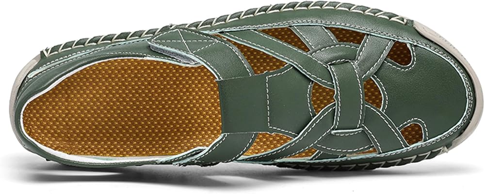 A Pair of Women's Leather Cutout Closed Toe Fisherman Sandals