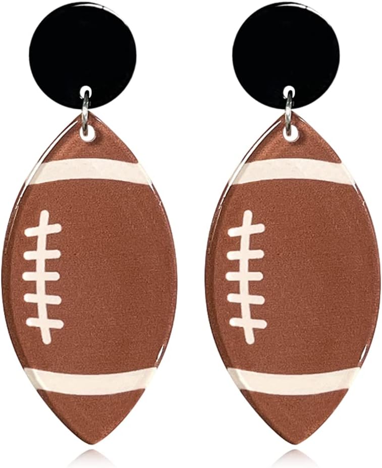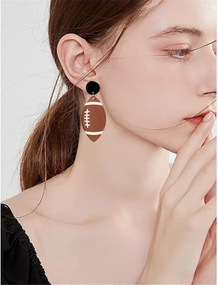 The sparkly chic football dangle drop earrings for women girls, those who wear their passion for football league. Acrylic round sphere design drop danglers are symbolic to our love and like for football. Wear them in style and style them with pride.Super lightweight weight is comfortable for wear it for a long time.The glittering layer of these acrylic football danglers would give an added edge to your look. Grab this today for yourself or gift it to your bestie relatives。