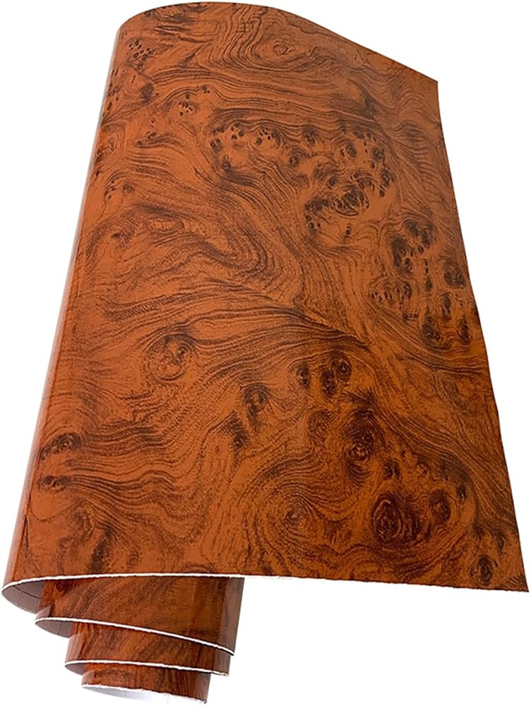 【Realistic Wood Grain Finish】 High-definition glossy brown wood pattern mimics natural timber, instantly upgrading car dashboards, furniture, or home decor. UV-resistant print won't fade over time.