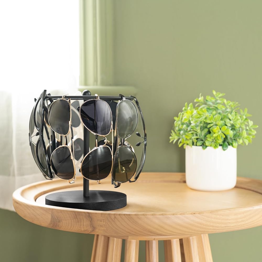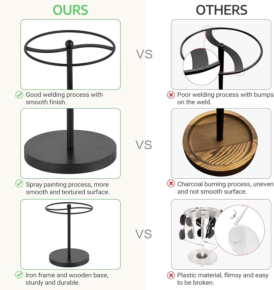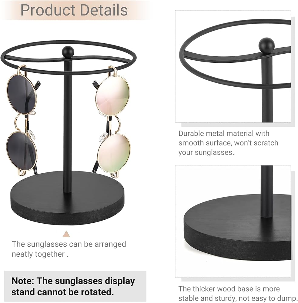 Safety & Practicability : Featuring a wooden round weighted base which is more stable and sturdy, evenly distribute pressure that makes it stands steadily and not easy to fall. Also the metal material with a smooth finish, will not rust and scratch your glasses. Note: The sunglasses display stand cannot be rotated