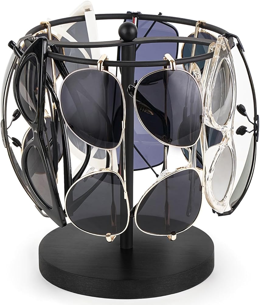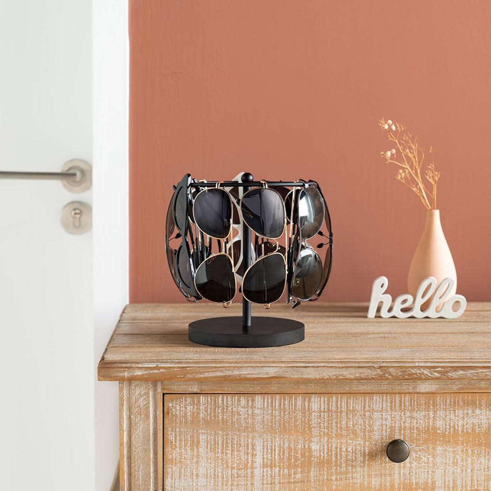 Mkono Sunglasses Organizer Glasses Holder Stand Sunglass Storage Display Eyeglasses Rack for up to 12 Pairs of Eyewear Glasses for Table Dresser Desk Countertop Bedroom (1, Black)