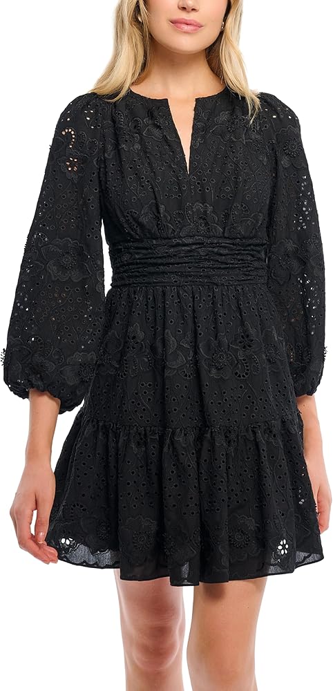 Shoshanna's resort collection features the bestselling Costas dress in a seasonless black cotton eyelet, the perfect little black dress to dress up or down.