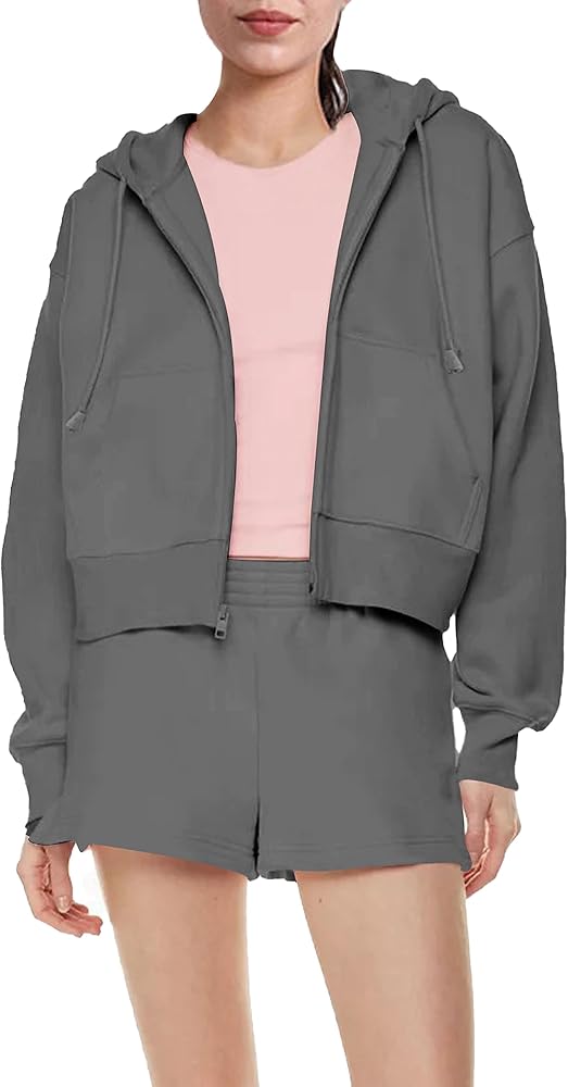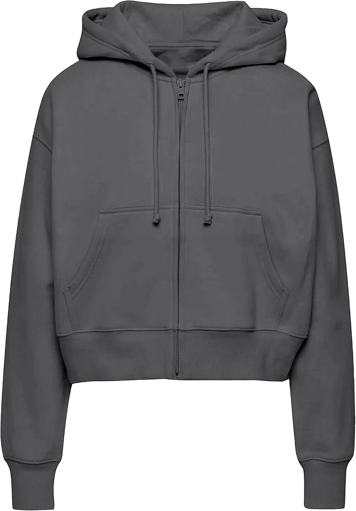 Casual fleece-lined cropped tops jackets with zipper down closure and two roomy kangaroo pockets for convenient storage