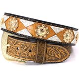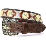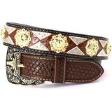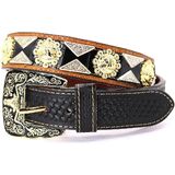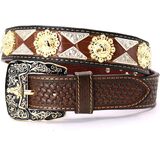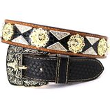 【SPECIAL DESIGN DETAILS】:The metal hardware perfectly contrasts with the deeper color strap, making the gold metal part stand out. Different Conchos can be selected. gold berry, silver berry, gold flower or silver flower, plusing two pattern selection-Floral Embossing or Basketweave Embossing.