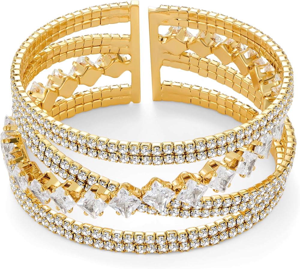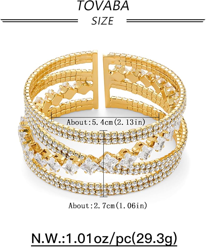 Lightweight Stretch Bracelets for Women: The inner diameter of gold chunky bracelet is 57mm/ 2.24 inches before stretching, 35mm/ 1.37 inches wide. The elastic design makes it an ideal partner for everyday wear and party attendance