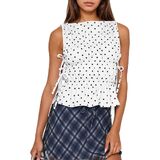 Versatile Style: Polka dot tank tops for women, featuring boat neck, sleeveless, vintage polka dot print overall, smocked ruched, cute side tie with bow knots, trendy y2k going out shirts, ruffle peplum tops for e-girls teens 2000s