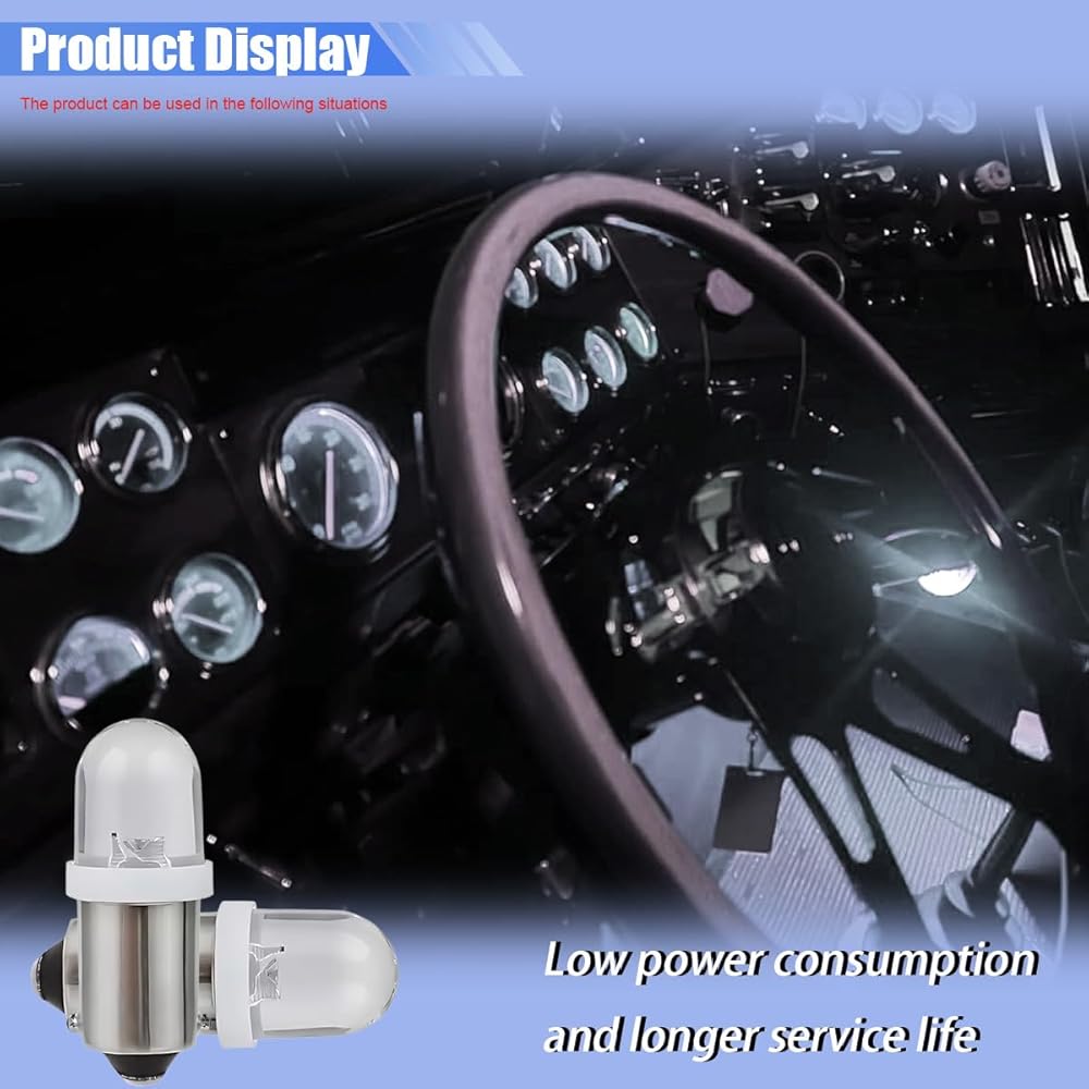 【Wide Application】:This 1895 LED car bulb is compatible with the following bulb models: BA9, BA9S, 53, 57, 1895, 1891, 3893, 47830, 64111, etc. It can be used for various lighting scenes in the car, such as roof lights, license plate lights, reading lights, dashboard lights, etc. It is suitable for almost all 12V power vehicles such as cars, trucks, SUVs, motorcycles, etc..