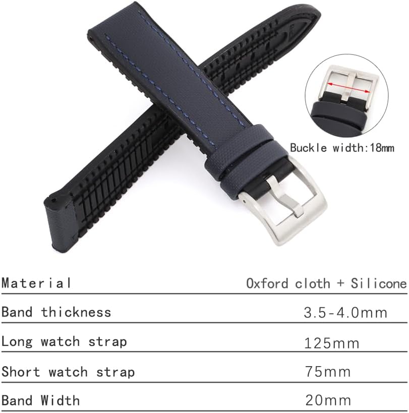 High quality construction: Othelevel strap is made of high quality Oxford fabric and rubber layer. Soft and breathable, waterproof and crack resistant. The front of this watch band is made of waterproof Oxford fabric, the bottom is made of rubber, maximizing the comfort of wearing the watch band. The buckle of the strap is made of durable stainless steel for safe closing. Band thickness approx 3.5-4mm.