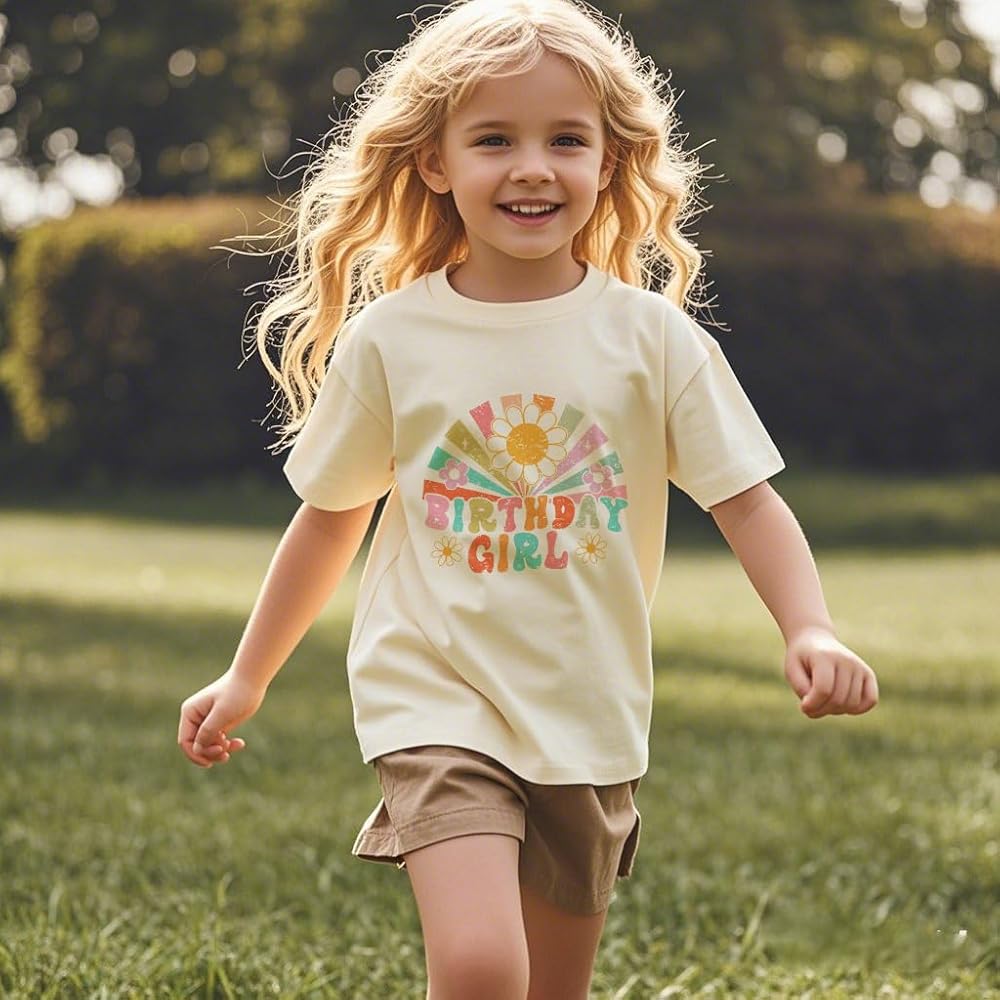 Design Features---Adorned with birthday girl print, it's me hi I'm the birthday girl, cowgirl hat birthday t shirt, rainbow sunflower pattern, in my birthday girl era and rainbow birthday girl print for your sweety girls, combining cuteness and festivity to spark joy in young wearers.