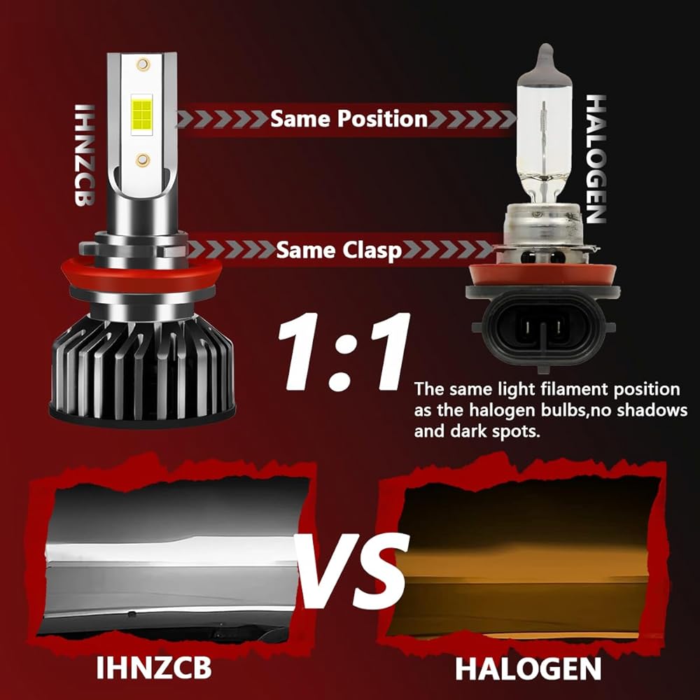 【Double-Sided Beads Design】IHNZCB's H9/H11 LED headlight bulbs has double-sided design, each side has 6 lamp beads, using CSP 3570 beads, 6000K white close to nature light, which can provide 5 times brightness than halogen bulbs.Provides clear visibility while driving without black spots or dizziness for oncoming drivers.