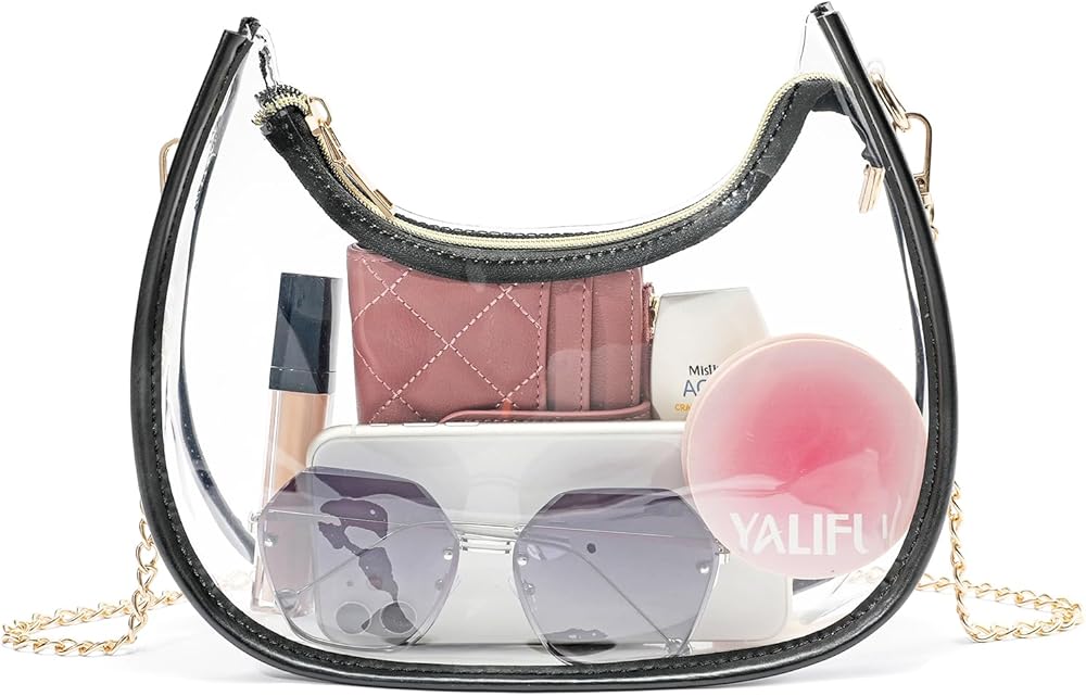 Perfect Size: This clear crossbody purse measures 10.24 x 2.76 x 7.28 inches, can hold lipstick, mini wallet, a few makeup accessories and cell phone, the internal capacity can meet most of your daily storage needs.