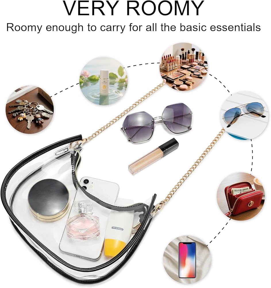 Stadium Approved: This clear purse stadium approved completely meets stadium tournament bag policy. This cute see through handbag purse can help you pass the security check easily and quickly. Perfect purse for sporting events or venues requiring a clear bag, can be dressy or casual.