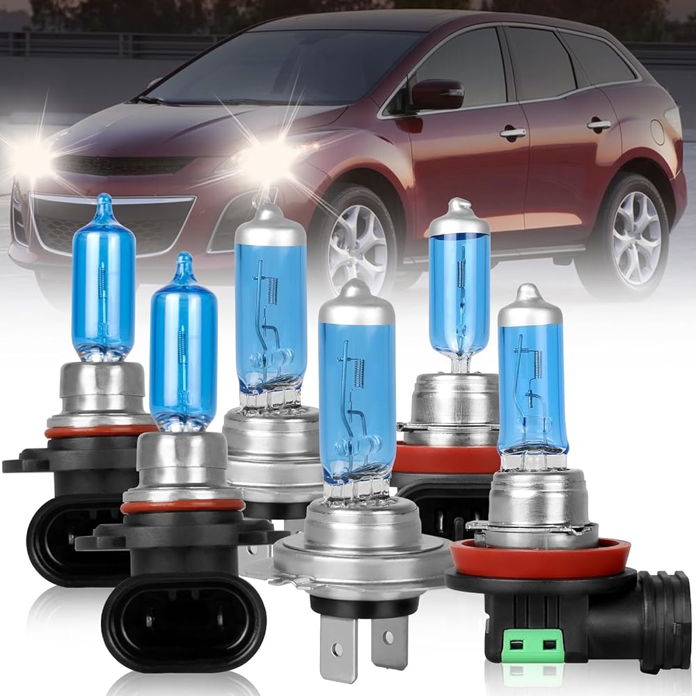 9005 H7 Headlight Bulbs Fit For Mazda CX-7 2007-2012 Halogen Bulbs 9005 High Beam + H7 Low Beam + H11 Fog Light Car Replacement Bulb, Super Bright Plug and Play, 6 PCS