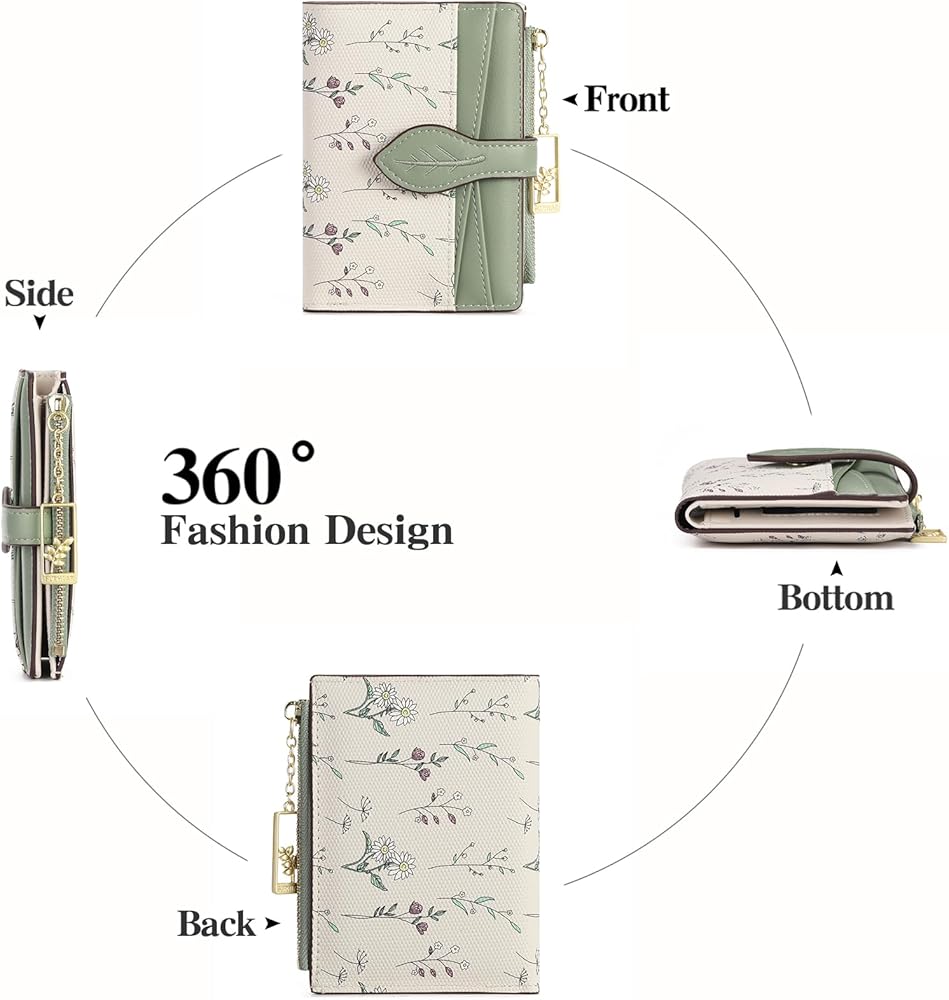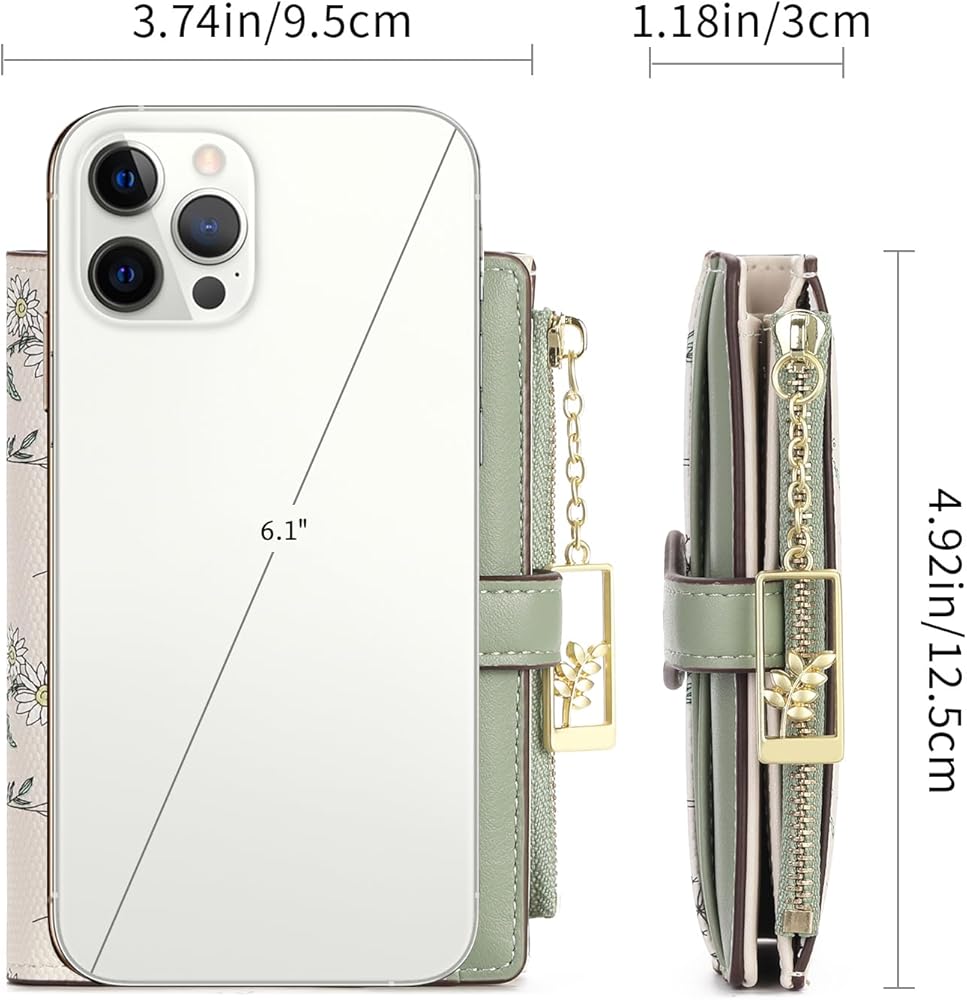 Minimalist & Slim Wallet for Women: The bifold wallets for women are made of premium vegan leather with a smooth zipper, a floral pattern on the surface, a classic design, a soft touch, and wear-resistant. Size is 4.92 x 3.74 x 1.18 inches, weight is 0.15 lb, slim and lightweight, very handy and easy to carry. You can put it in your jacket/pant pocket or handbag, crossbody bag, etc, space-saving