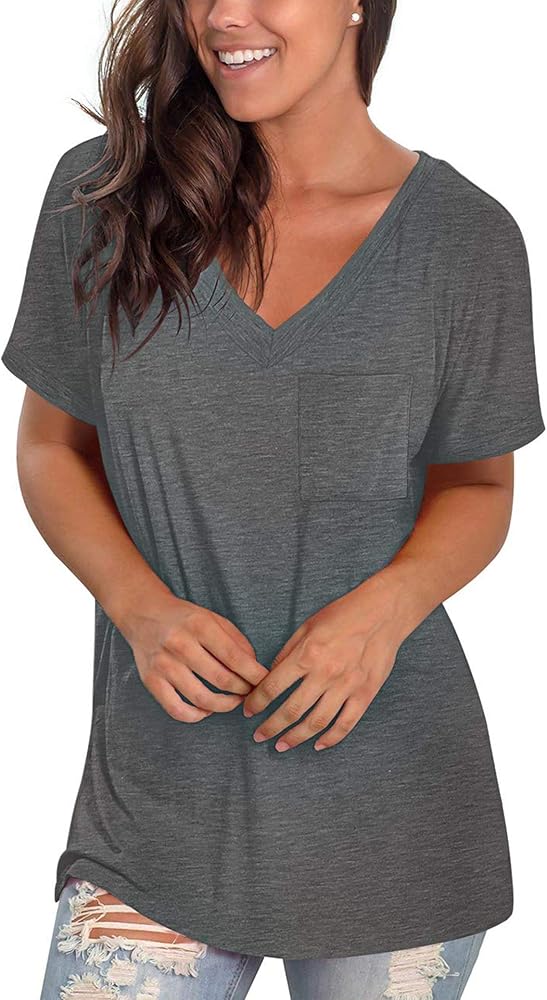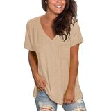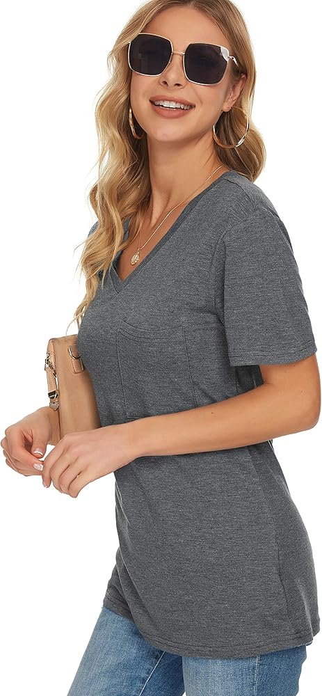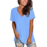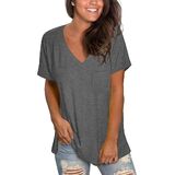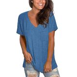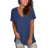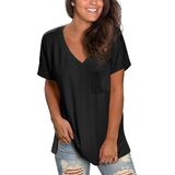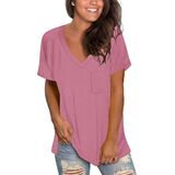Features:Short sleeve, V neck, solid color, loose casual style, The side pocket design adds special features to this womens blouse.This versatile V neck t shirt is for effortless styling your way!Is design for any bodyline,will be a good choice for you.